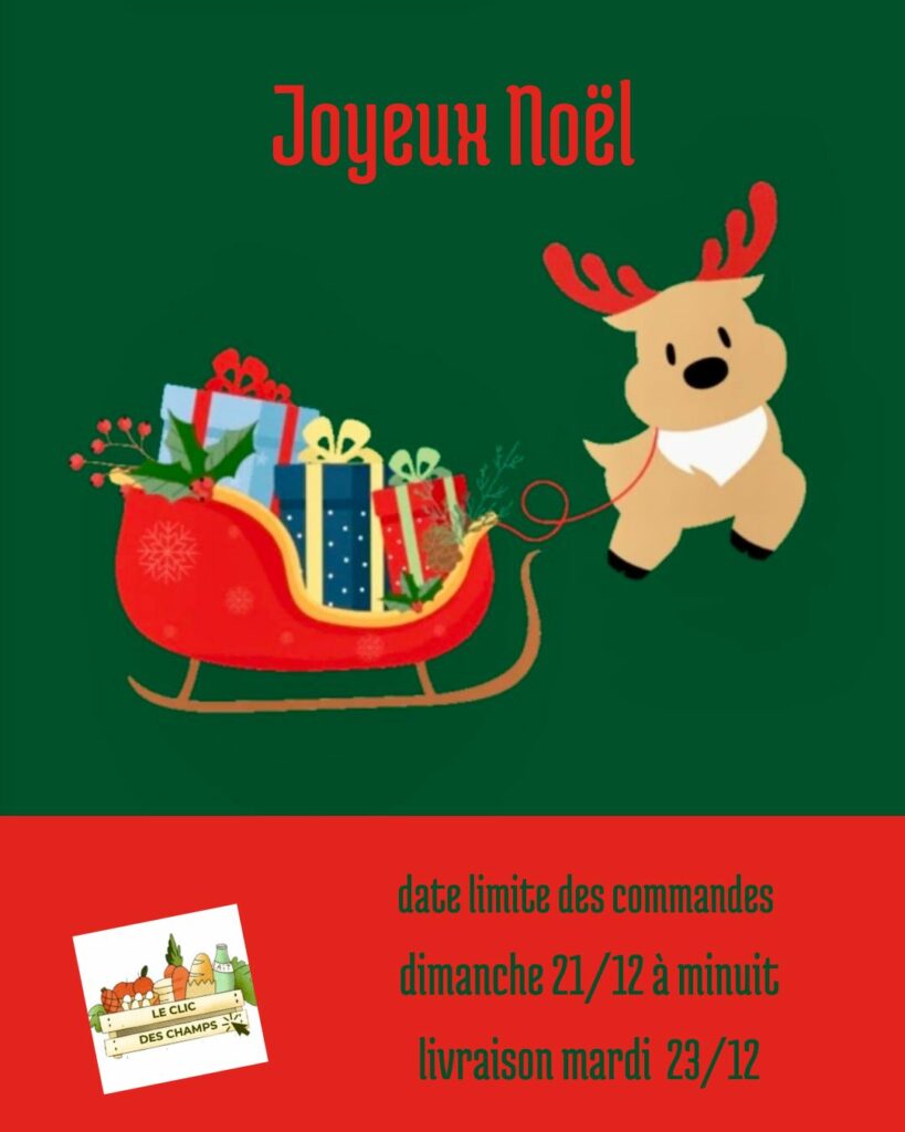 👉 Jour de livraison exceptionnel : mardi 23 décembre, horaires et lieux habituelsPas de livraison semaine 01, reprise des livraisons le 8 janvier